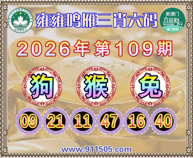 109期:『雍雍鸣雁』 👑三肖六码👑【狗猴】开:兔16