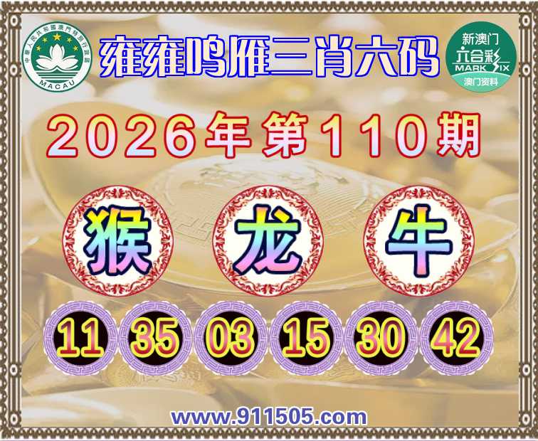 110期:『雍雍鸣雁』 👑三肖六码👑【猴龙】开:牛30