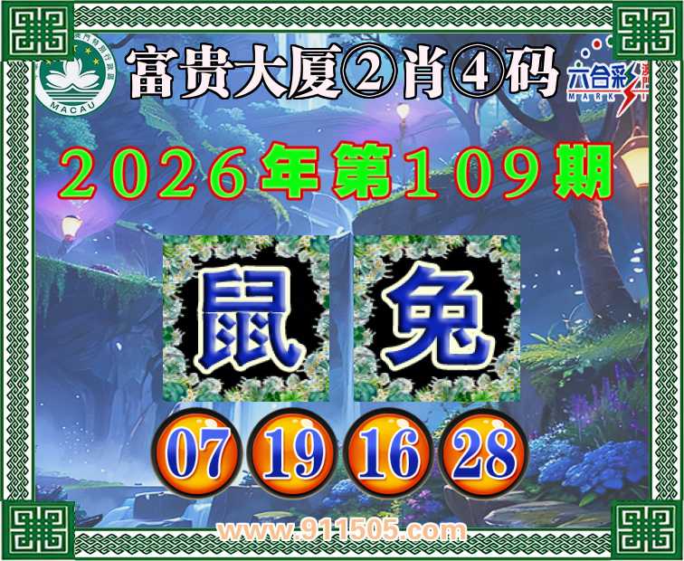 109期:【富贵大厦】 👛②肖④码👛【鼠】【07.19.16.28】开:兔16